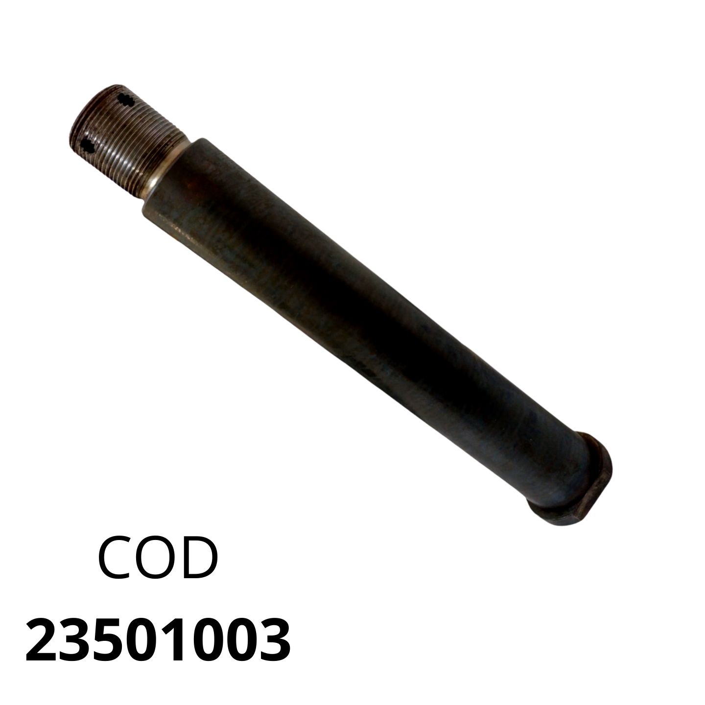 Fabricado pela OTER Peças Agrícolas, o eixo 23501003 é produzido em aço forjado de alta liga com tratamento térmico integral. Sua superfície de contato é retificada para garantir um ajuste preciso com as buchas do balancim, eliminando folgas que poderiam causar o desalinhamento das rodas e o desgaste prematuro dos pneus.