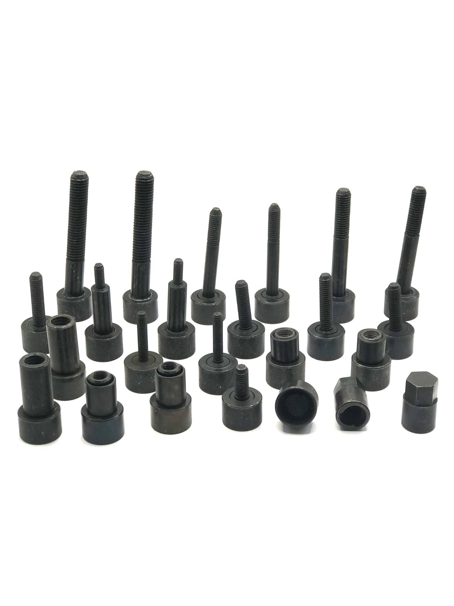 Composto por 24 peças, incluindo parafusos, porcas e chaves de aperto antifurto.